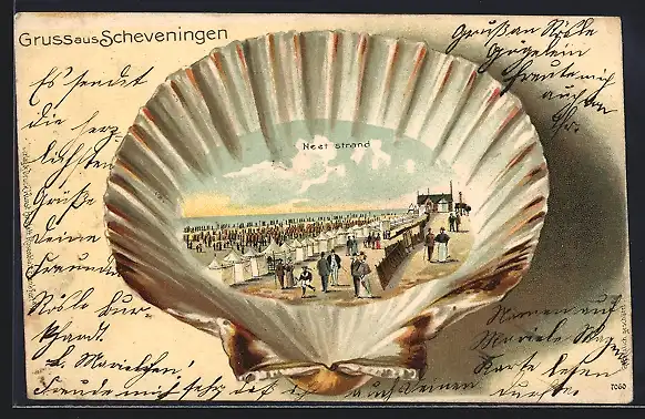 Passepartout-Lithographie Scheveningen, Neet strand, Ansicht auf Muschel