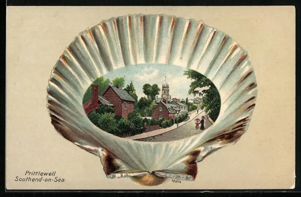 Passepartout-Lithographie Southend-on-Sea, Prittlewell in der Muschel