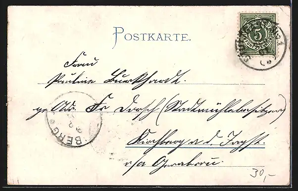 gelaufen 1901, Eckknick li. oben, minimaler Einriss re. mittig, guter Zustand