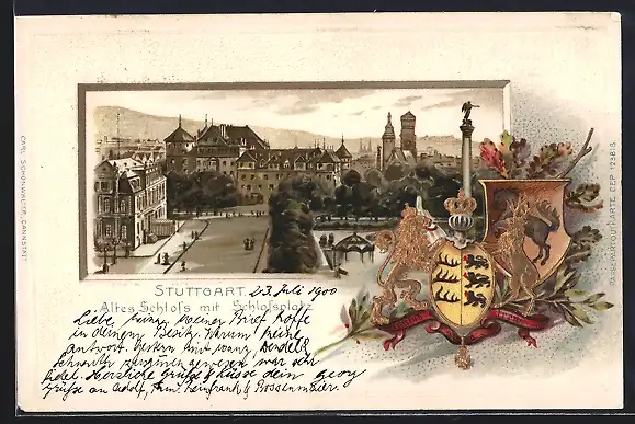 Passepartout-Lithographie Stuttgart, Altes Schloss mit Schlossplatz