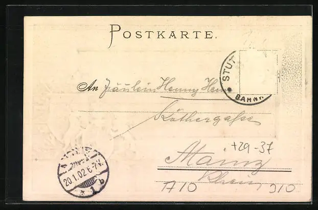 gelaufen 1902, Briefmarke entfernt, rückseitig Oberflächenschaden, guter Zustand