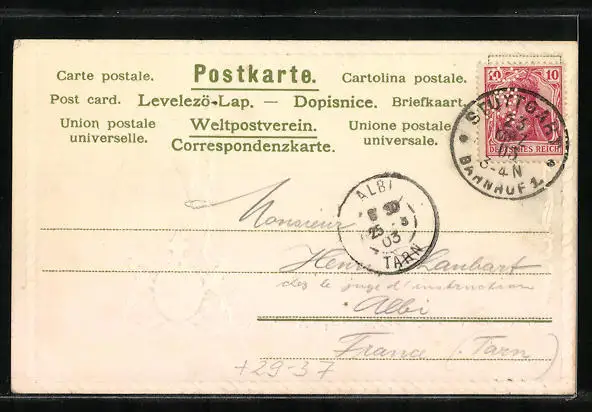 gelaufen 1903, Eckknick unten re., guter Zustand