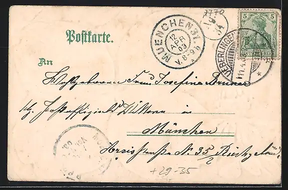 gelaufen 1903, Eckknicke re., Ecken bestoßen, guter Zustand