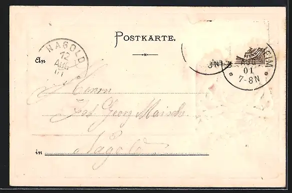 gelaufen 1901, Briefmarke entfernt, rückseitig Oberflächenschaden, guter Zustand
