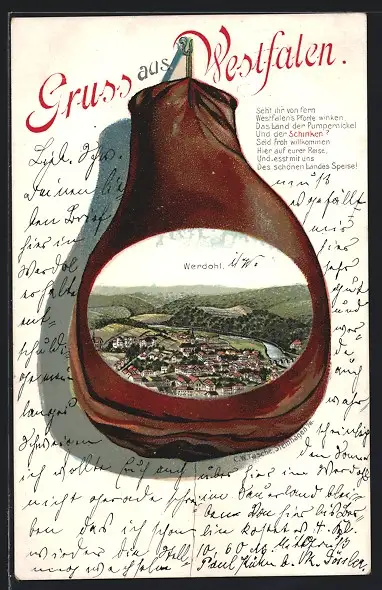 Passepartout-Lithographie Werdohl, Gesamtansicht im Schinken