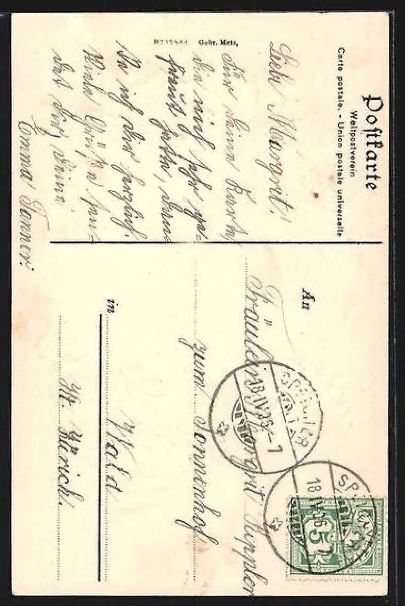 gelaufen 1905, Stecknadelloch li. oben, guter Zustand