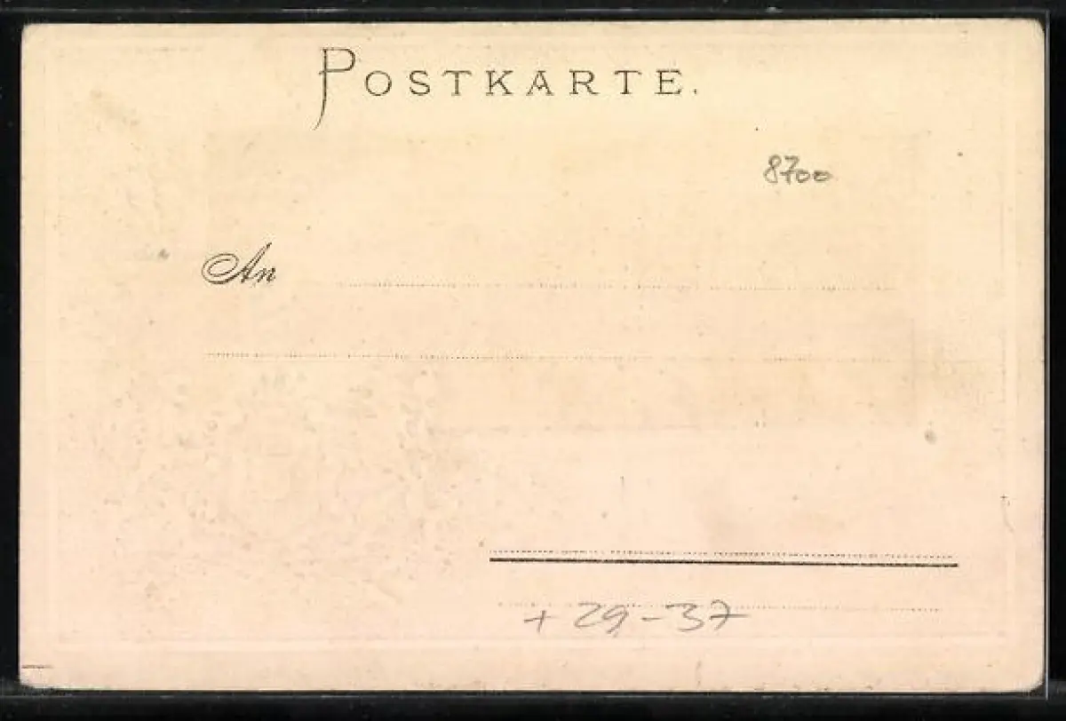 Personenbezogene Daten auf der Rückseite der Karte wurden durch blauen Textmarker unkenntlich gemacht. Die blauen Stellen sind auf die Vorderseite durchgeweicht und wirken sich negativ auf das Postkartenfoto aus