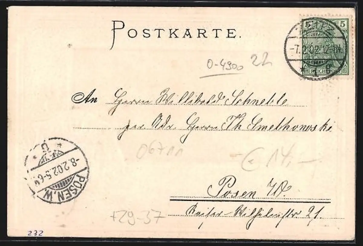 gelaufen 1902, Eckknick oben rechts, guter Zustand