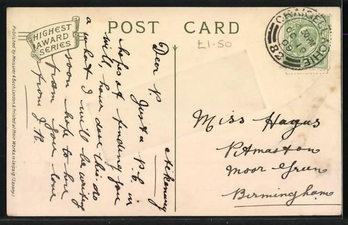alte Ansichtskarte, gelaufen 1909, guter Zustand