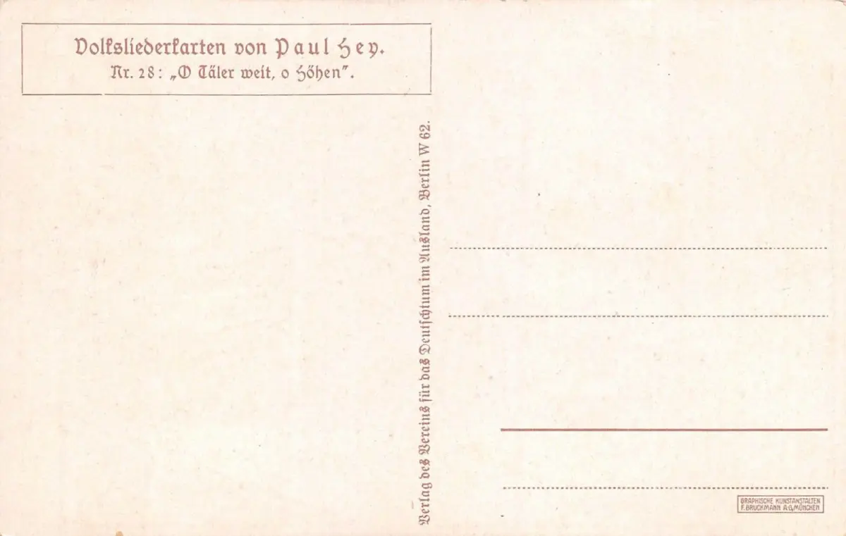 Paul Hey Volksliederkarte Nr. 28 O Täler weit, o Höhen Künstler Postkarte