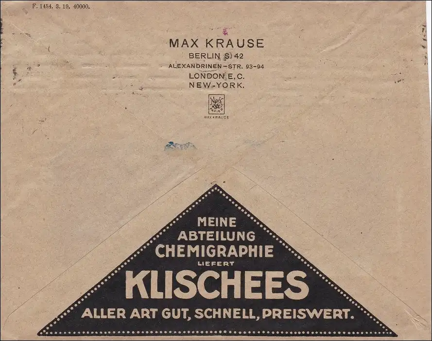 Perfin: Brief aus Berlin, Max Krause, Klischees, MK