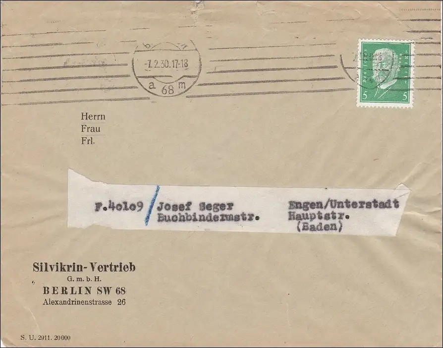 Perfin: Brief aus Berlin, Silvikrin-Vertrieb, 1930, EW