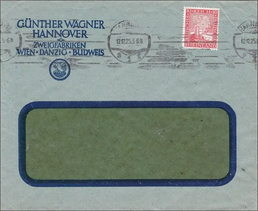 Perfin: Brief aus Hannover 1925, Günther Wagner, GW