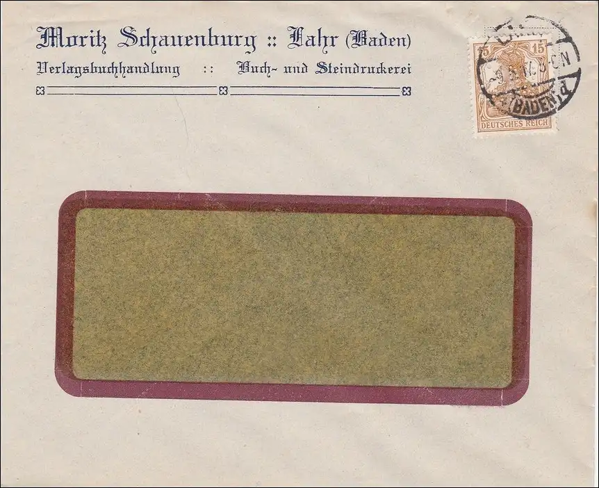 Perfin: Brief aus Lahr, Moritz Schauenburg, 1917 MS