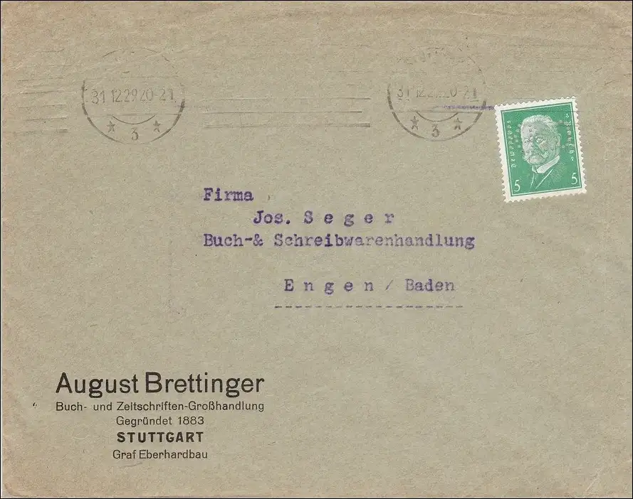 Perfin: Brief aus Stuttgart, August Brettinger, 1929, K.N.O.
