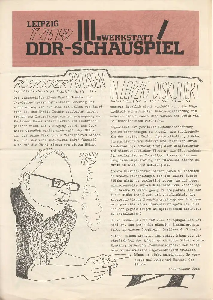 Titel: III. Werkstatt DDR-Schauspiel Leipzig 17-21.5.1982 Bulletin No 5