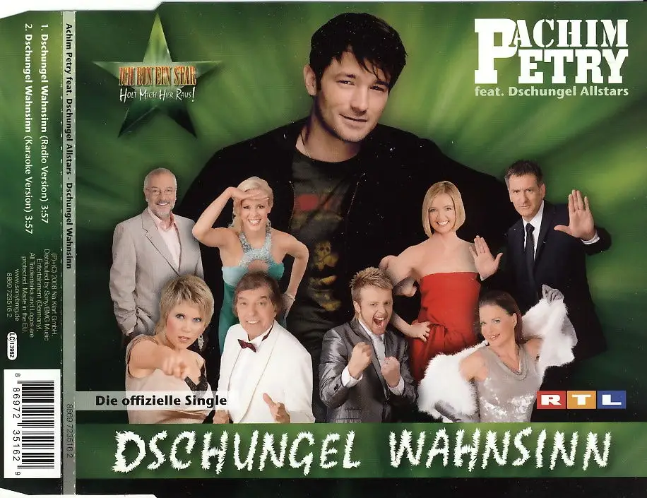CD Single Petry, Achim feat. Dschungel Allstars - Dschungel Wahnsinn, Wolfgang Petry - Wahnsinn coverversion, Zustand CD M- Hülle M-; Made in Europe 2008 Na Klar 8869 723516 2, Tracks Radio Vers., Karaoke Vers