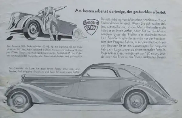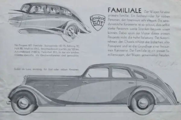 Peugeot 401 Modellprogramm 1935 "Symbol der Festigkeit" Automobilprospekt (5728)