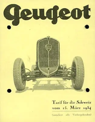 Peugeot Schweizer Preisliste 3.1934