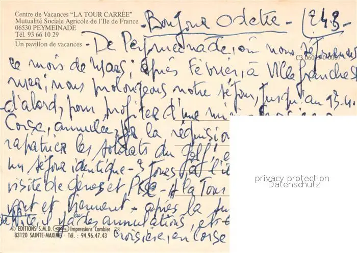 Peymeinade Centre de Vacances La Tour Carrée Peymeinade postalisch nicht gelaufen nach 1965 Erhaltung siehe scans [FriedD77] Frierer