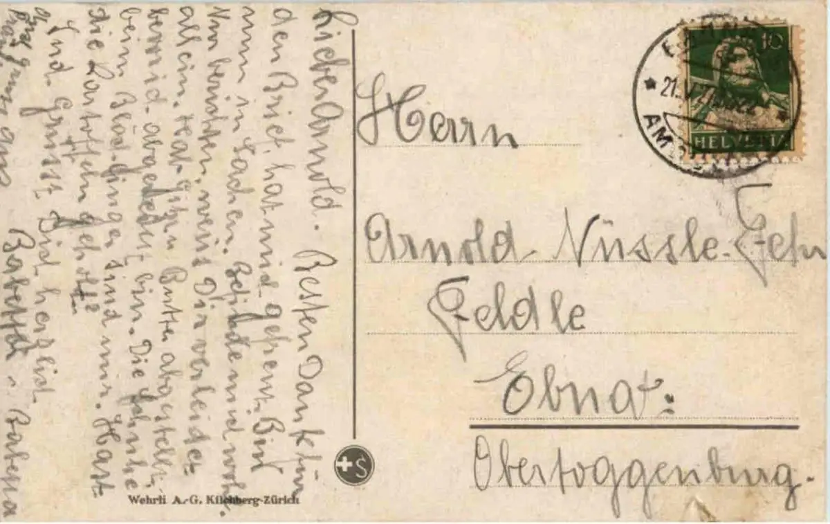 Danke. Alles Bestens. Können Sie mir allenfalls mitteilen, aus welchem Jahr die Postkarte stammt? Besten Dank.