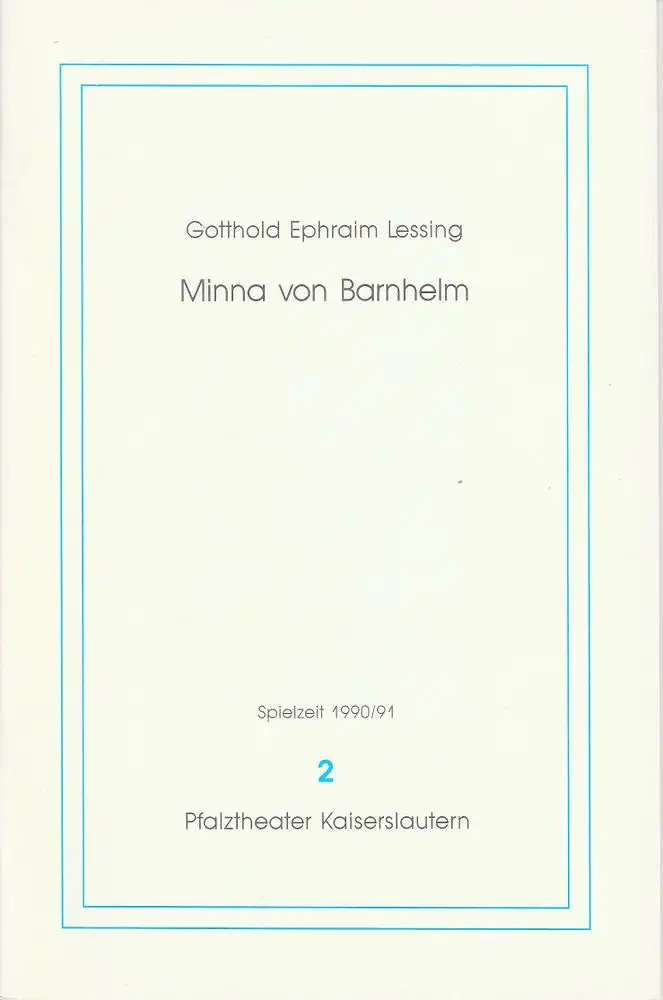 Pfalztheater Kaiserslautern, Michael Leinert, Christine Lang: Programmheft Minna von Barnhelm oder Das Soldatenglück. Premiere 21. September 1990 Spielzeit 1990 / 91 Heft 2.