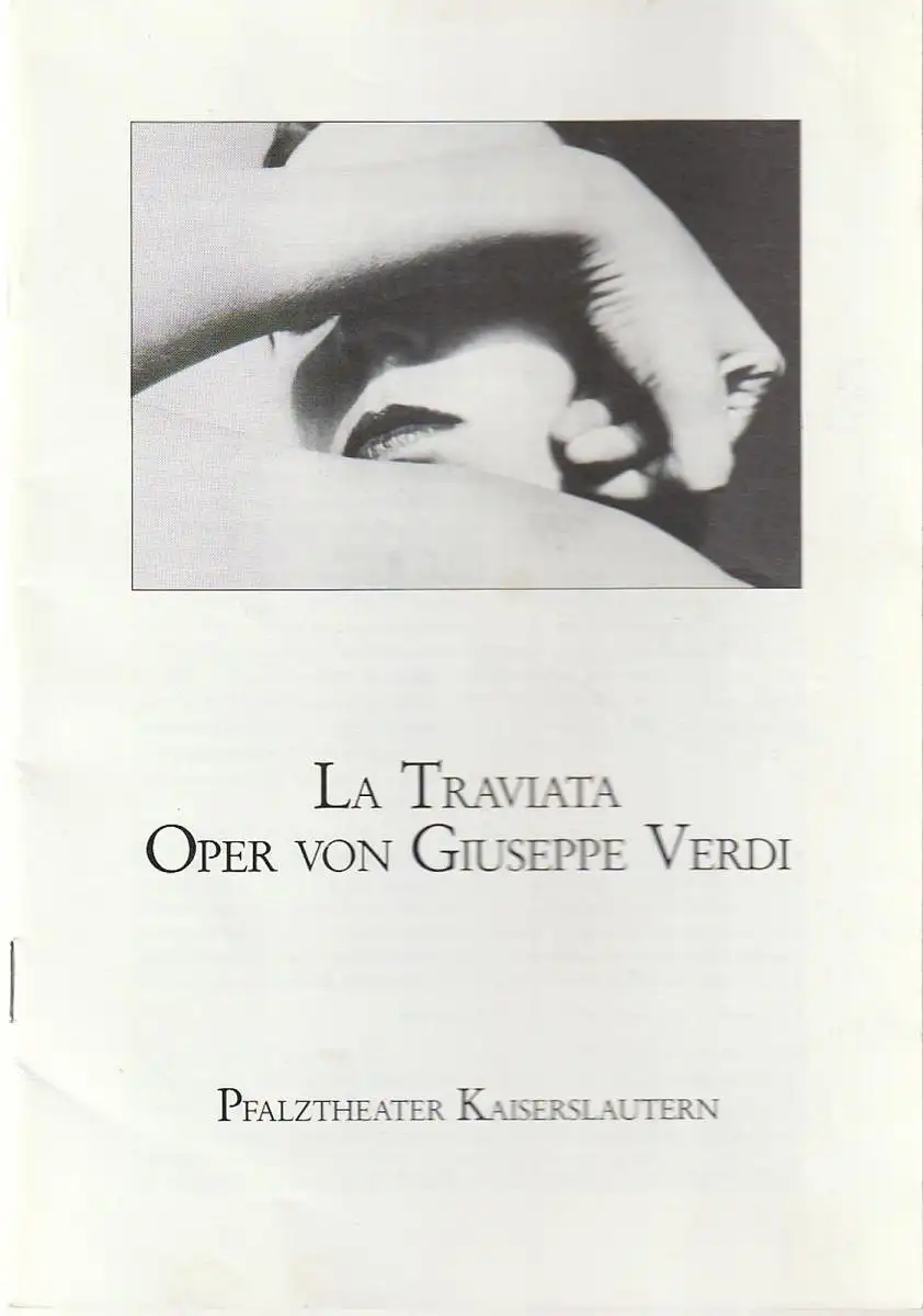 Oper in drei Aken nach Die Kameliendame von Alexandre Dumas fils. Musikalische Leitung: Wilfrie d Emmert. Inszenierung: Wolfganh Blum. Bühne: Wilfried Sakowitz. Kostüme: Annette Heraeus. Choreographie: Boris Pilato. Regieassistenz: Robert Thomas. Mitwirkende: Kthleen Broderick / Lucja Wierzbinska, Benedikt Kobel / Jürgen Wagner, Otto Daubner / Hans-Josef Pütz, Jayne Casselmann / Geertje Nissen, Elena Grigorescu, Thomas Harper, Andreas Scheel, u. a. - Theaterprogramm, Opernprogramm, Ballettprogramm, Musicalprogramm, Konzertprogramm, Theatermemorabilia, Programmhefte Sammlung, deutsche Theatergeschichte.
