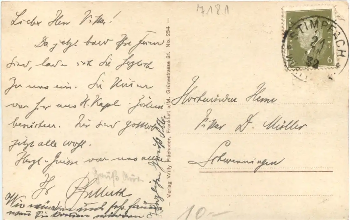Danke. Alles Bestens. Können Sie mir allenfalls mitteilen, aus welchem Jahr die Postkarte stammt? Besten Dank.
