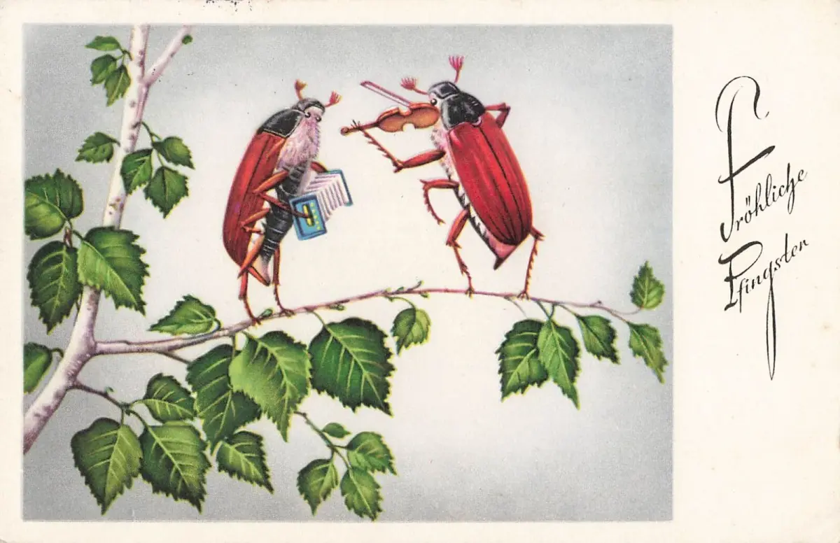 Pfingsten AK Maikäfer mit Geige Postkarte Berlin