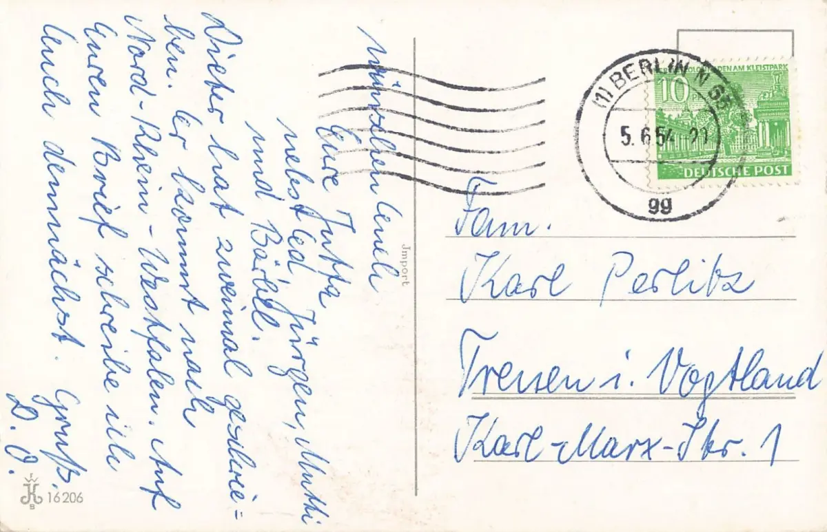Rückseite: gelaufen 1954