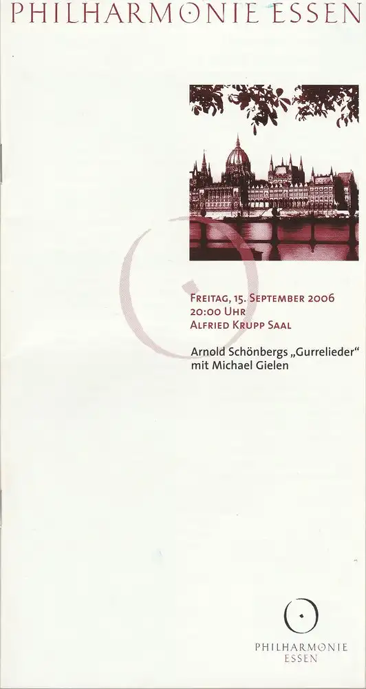 Titel: Programmheft Arnold Schönbergs GURRELIEDER mit Michael Gielen 15. September 2006 Alfried Krupp Saal