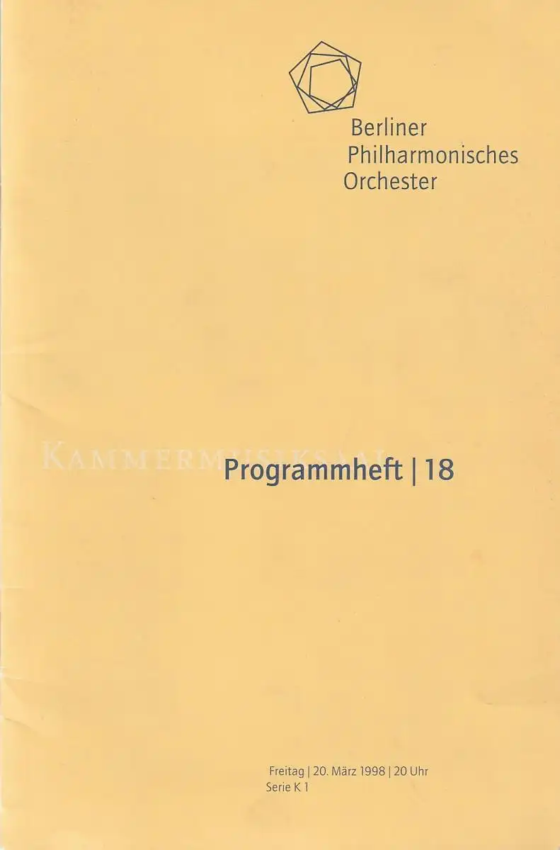 Titel: Programmheft BERLINER PHILHARMONISCHES ORCHESTER 20. März 1998 4. Konzert der Serie K1 Programmheft 18