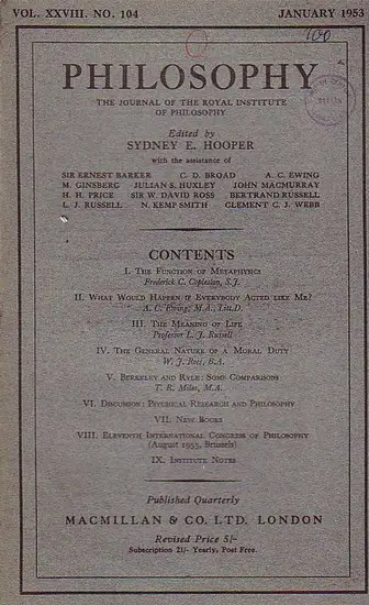 Titel: Philosophy. The Journal of the Royal Institute of Philosophy. Vol. XXVIII. No. 104. January 1953