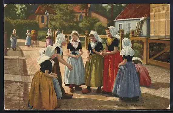 Photochromie-AK Walcheren, Mädchen in Trachten aus Zeeland