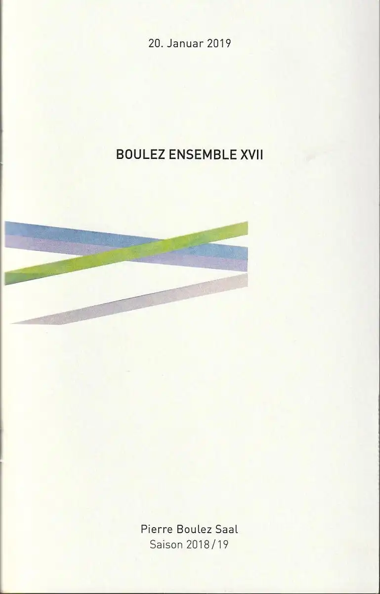 Programmheft BOULEZ ENSEMBLE XVII LECTURE-KONZERT 20. Januar 2019 Pierre Boulez Saal Saison 2018 / 2019 Heft 30