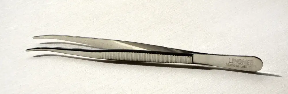 Pinzette 12 cm lang mit abgebogenen Spitzen, vernickelt