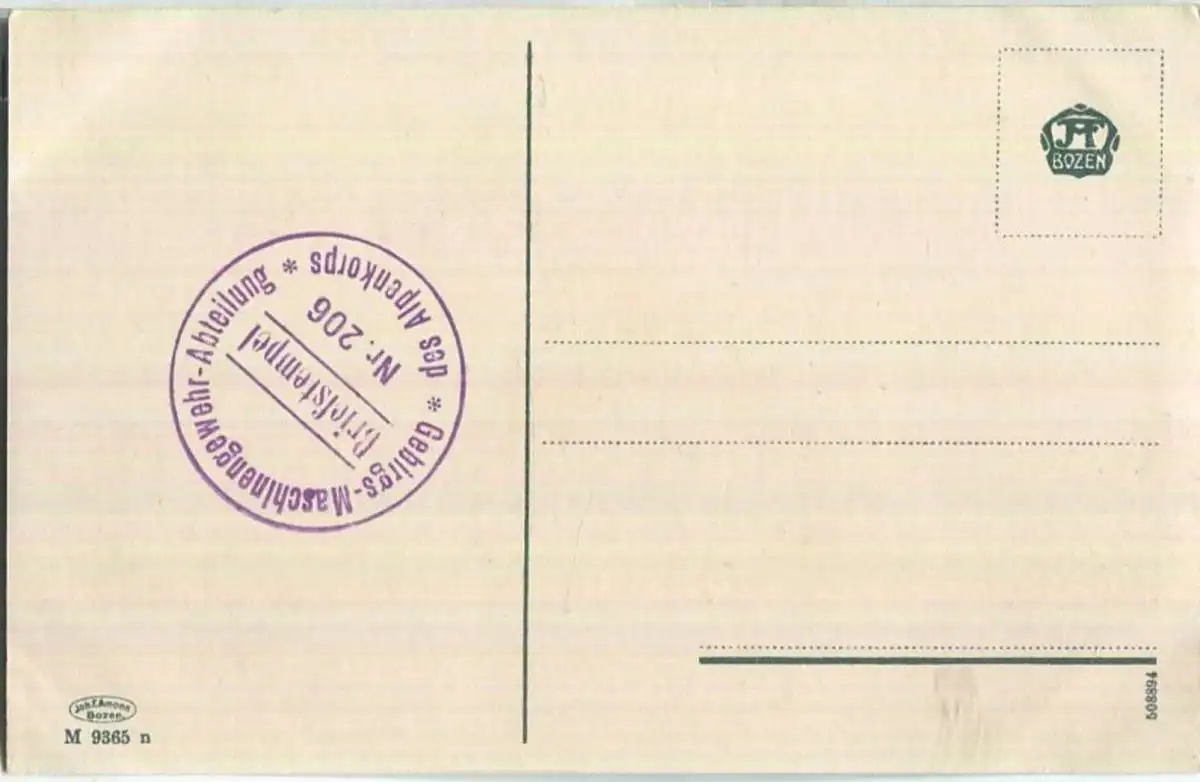 Pisciadusee in der Sellagruppe - Verlag Joh. F. Amonn Bozen - rückseitig Briefstempel Nr. 206 Gebirgs-Maschinengewehr-Abteilung des Alpenkorps (G4021) *