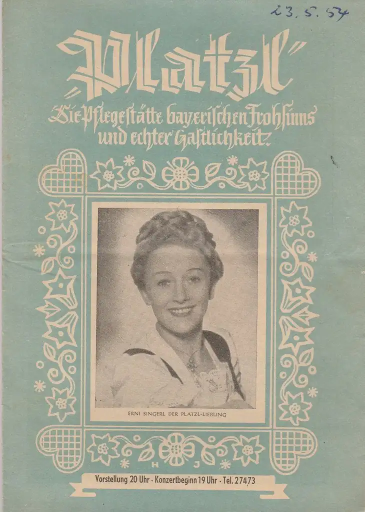 Platzl, Die Pflegestätte bayerischen Frohsinns und echter Gastlichkeit, Gast- und Vergnügungsstätte Platzl: Programmheft FROHSINN STIMMUNG HEITERKEIT Programm Mai 1954.