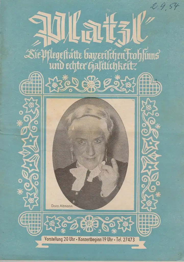 Platzl, Die Pflegestätte bayerischen Frohsinns und echter Gastlichkeit, Gast- und Vergnügungsstätte Platzl: Programmheft WEISS BLAUES KARUSSEL Programm September 1954.