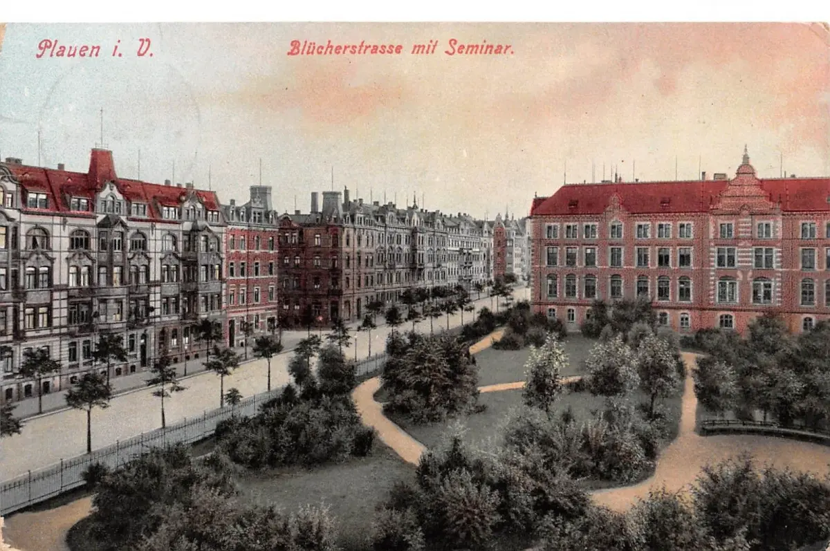 Plauen i. V. Blücherstrasse mit Seminar Postkarte AK 1908