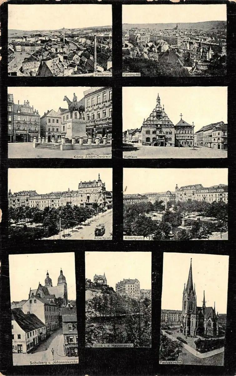 Plauen i. Vogtl. Panorama Rathaus Albertplatz Pauluskirche Postkarte AK 1909