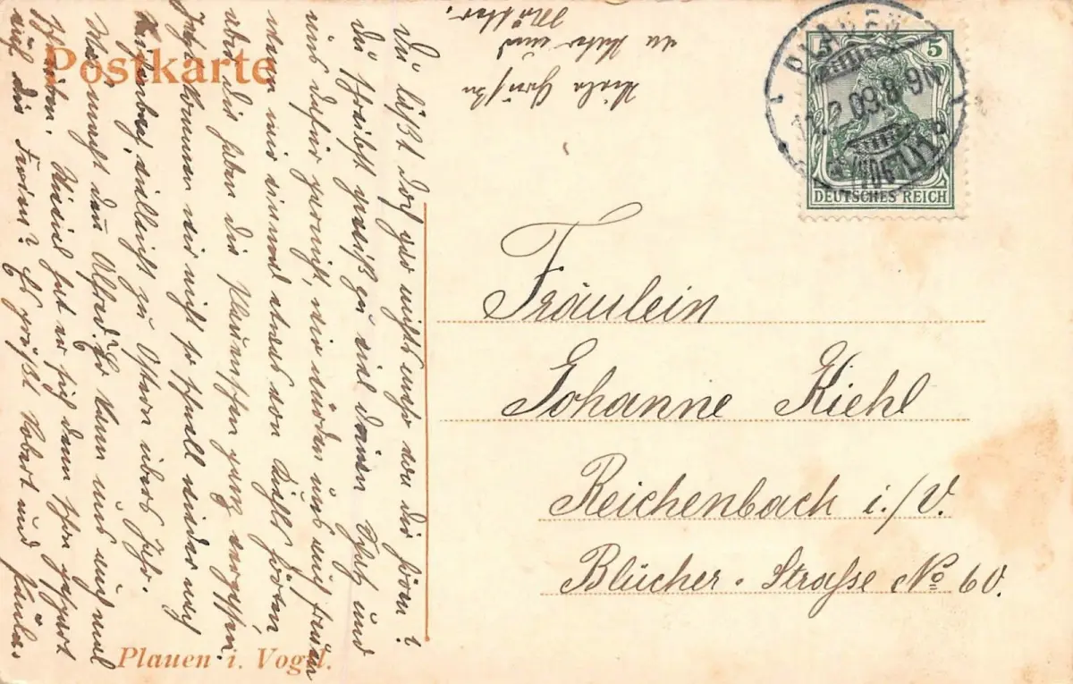 Rückseite: gelaufen 1909 von Plauen (Vogtl.)