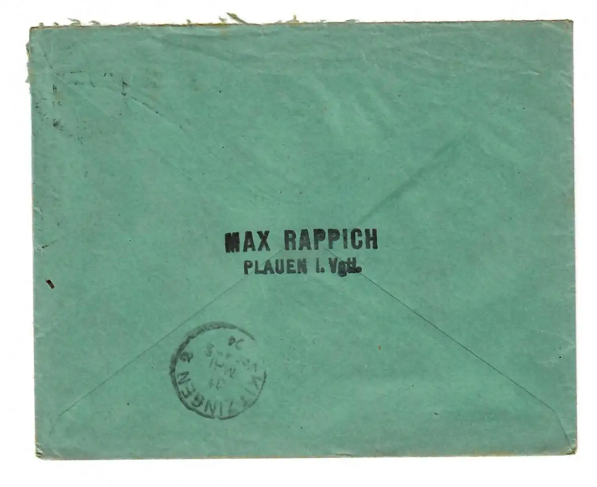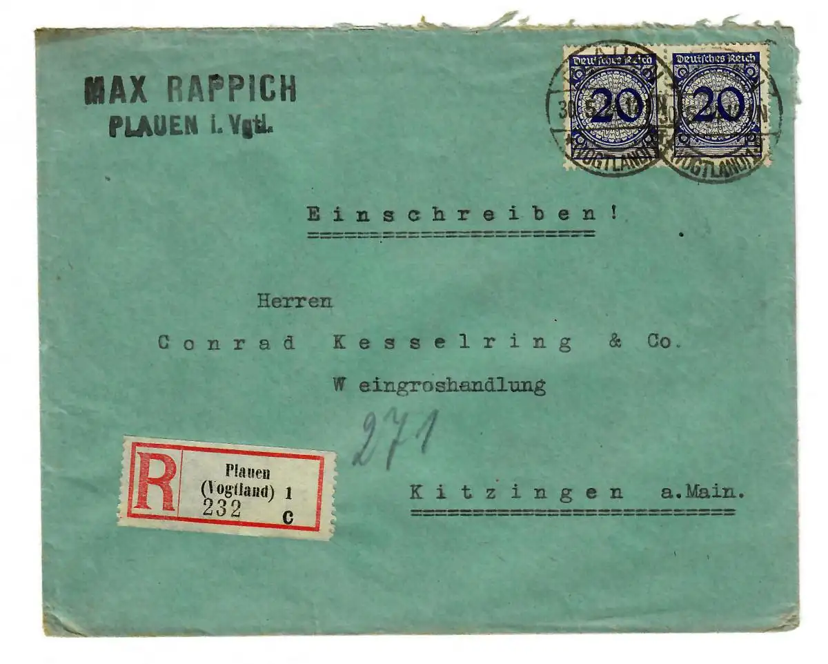 Plauen i. Vogtland, Einschreiben 1924 nach Kitzingen