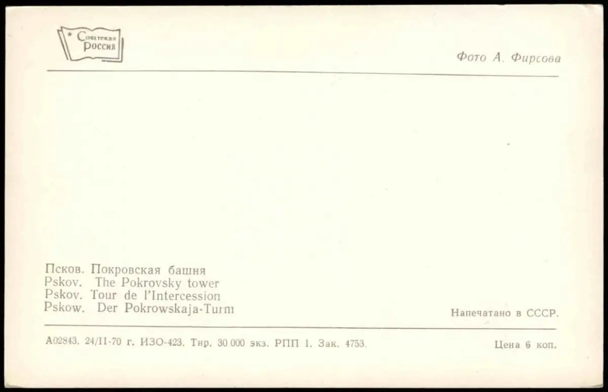 Pleskau Pleskow Pskow Псков Псков. Покровская башня Pskov Pokrovsky tower 1970
