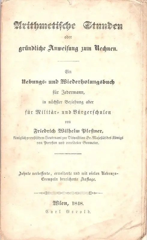 Verlagsort: Wien : Gerold , 1848. Zehnte verbesserte, erweiterte und mit vielen Übungs-Exempeln bereicherte Auflage