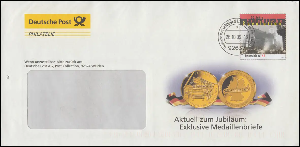 Plusbrief F460 Friedliche Revolution Werbung für Madaillenbriefe WEIDEN 26.10.09