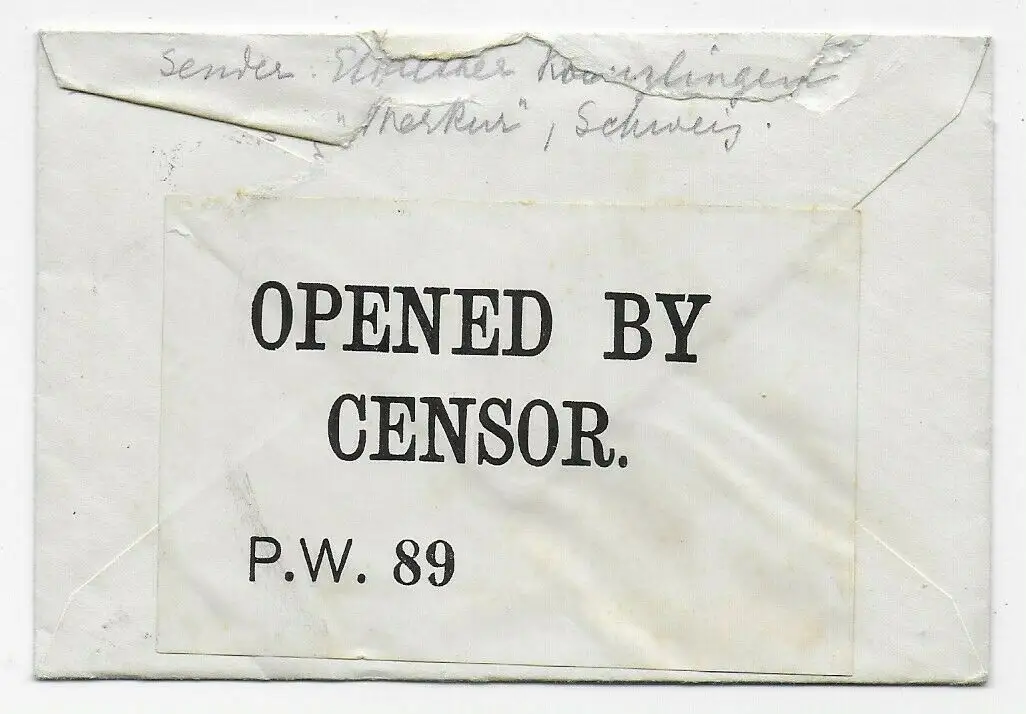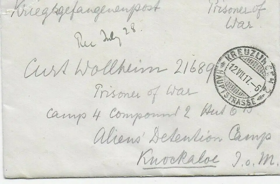 PoW, Kgf: Brief 1917 aus Kreuzlingen nach Isle of Man, Knockaloe Internment Camp