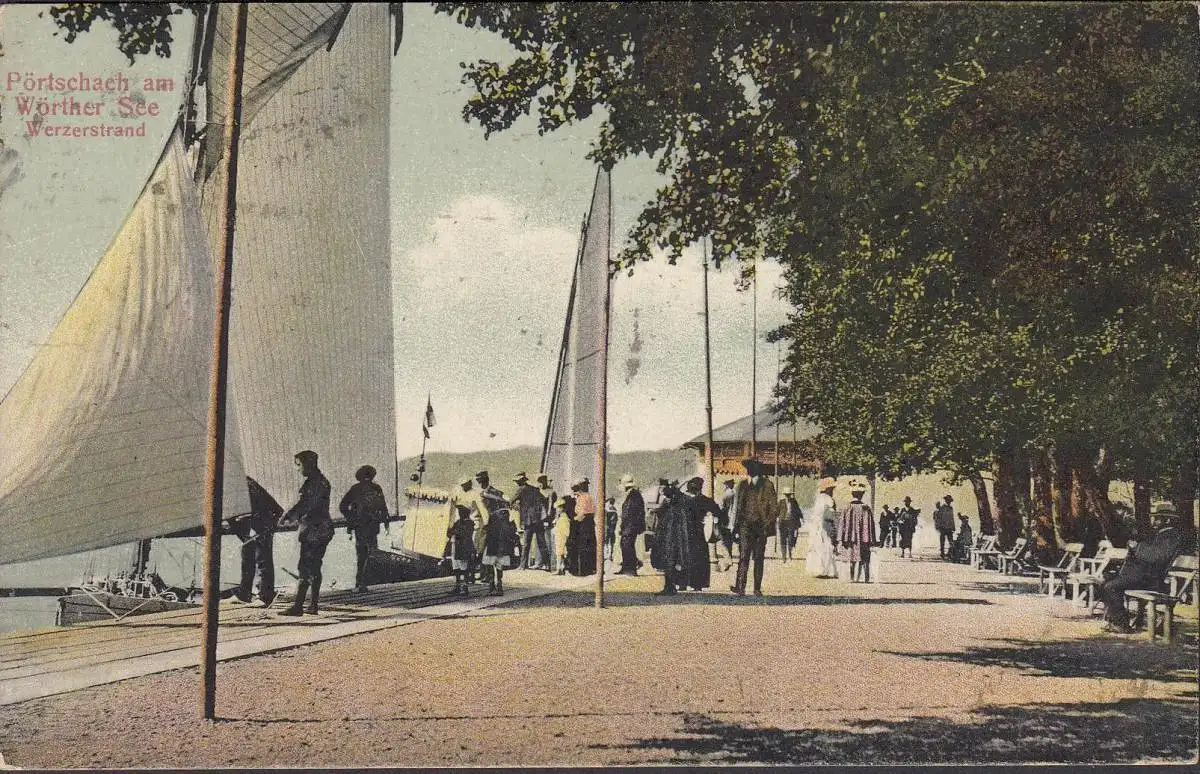 Pörtschach a. Wörthersee, Werzerstrand, Promenade, Segelboote, gelaufen 1913