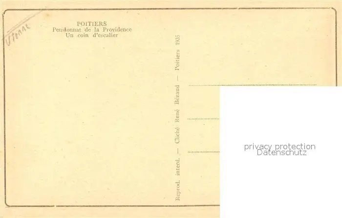 Poitiers_Vienne Pensionnat de la Providence Un coin d'escalier Poitiers Vienne postalisch nicht gelaufen 1921-1965 Erhaltung siehe scans [WerneD78] WernPID7