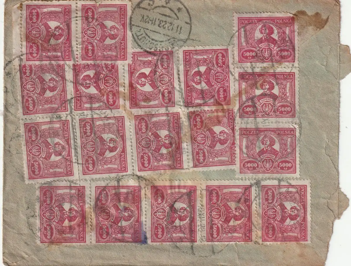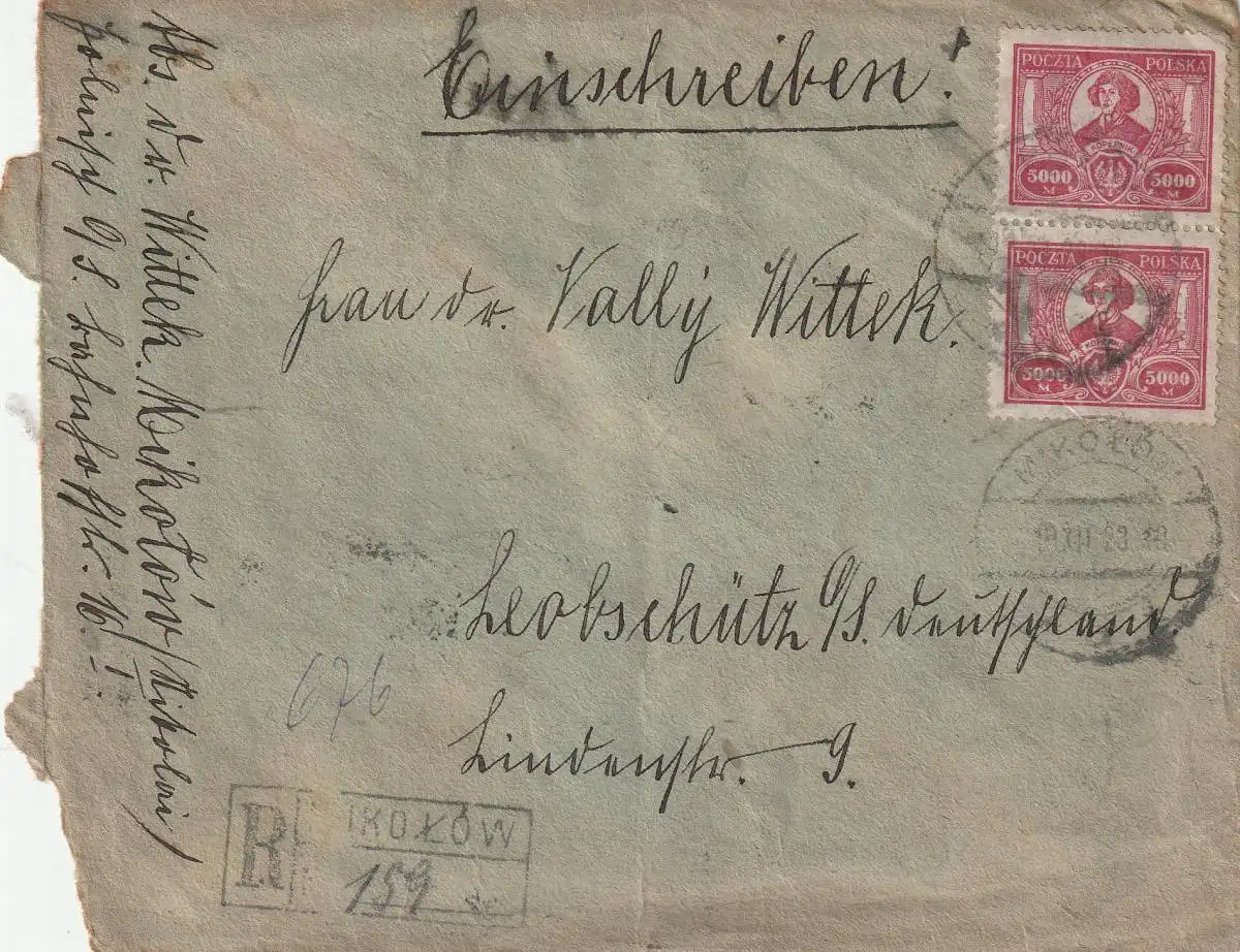 POLEN - 1923, Michel 184, 5000 Marka Kopernikus, Einschreiben 20-fach Frankatur, Einschreiben MIKOLOW / NIKOLAI / Oberschlesien nach LEOBSCHÜTZ